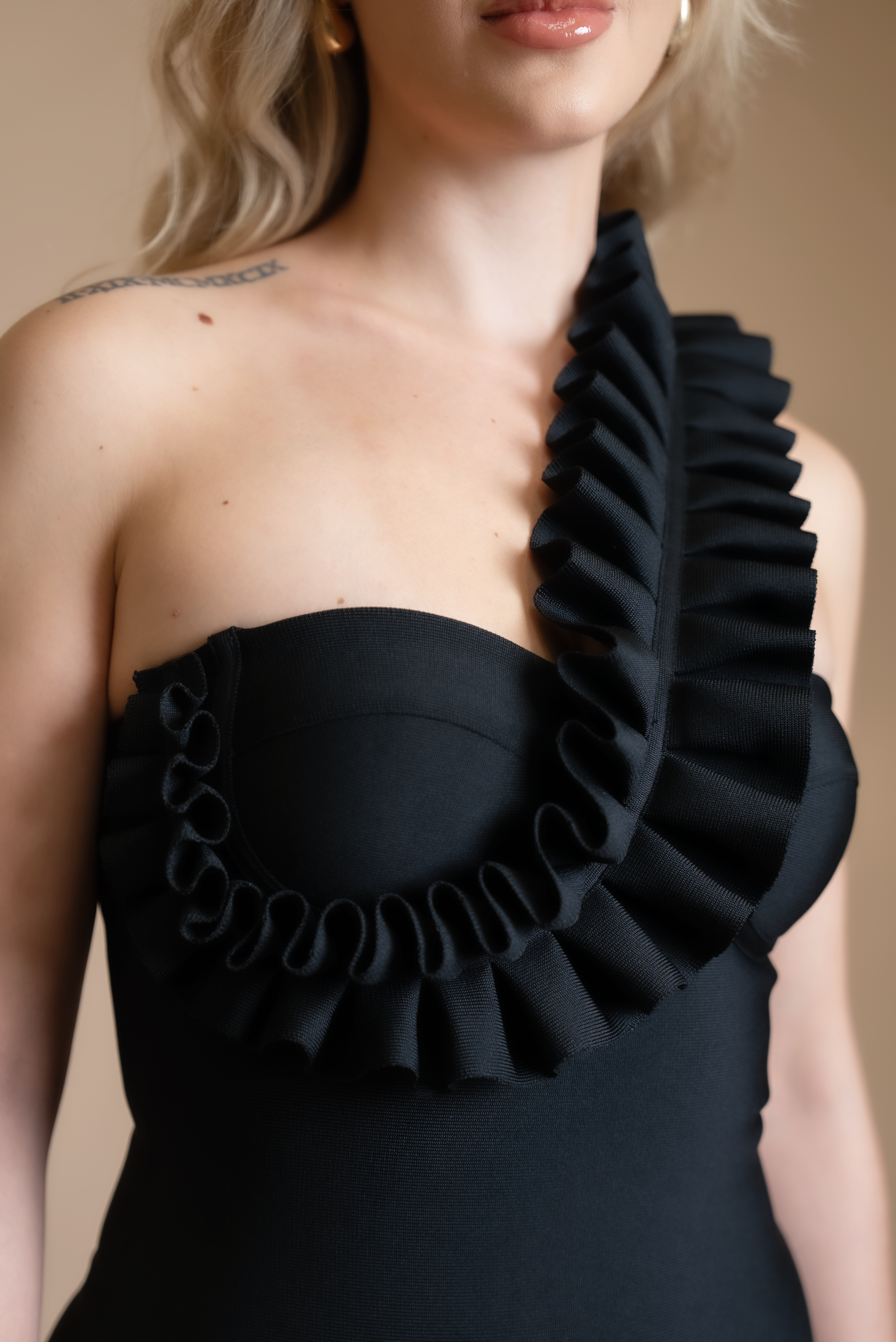 The model is wearing a size M