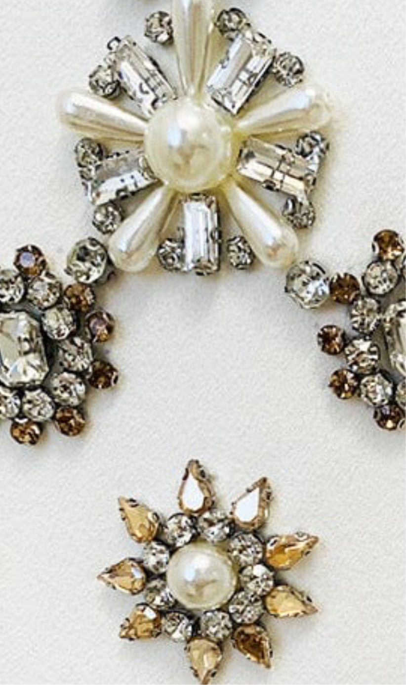 Chic and sophisticated, this ivory three-piece set features a cropped crystal-embellished jacket, a white knit crop top, and wide-leg tailored pants. The jacket adds a touch of glamour with its intricate sparkle details, perfect for dressy events or elegant evenings.