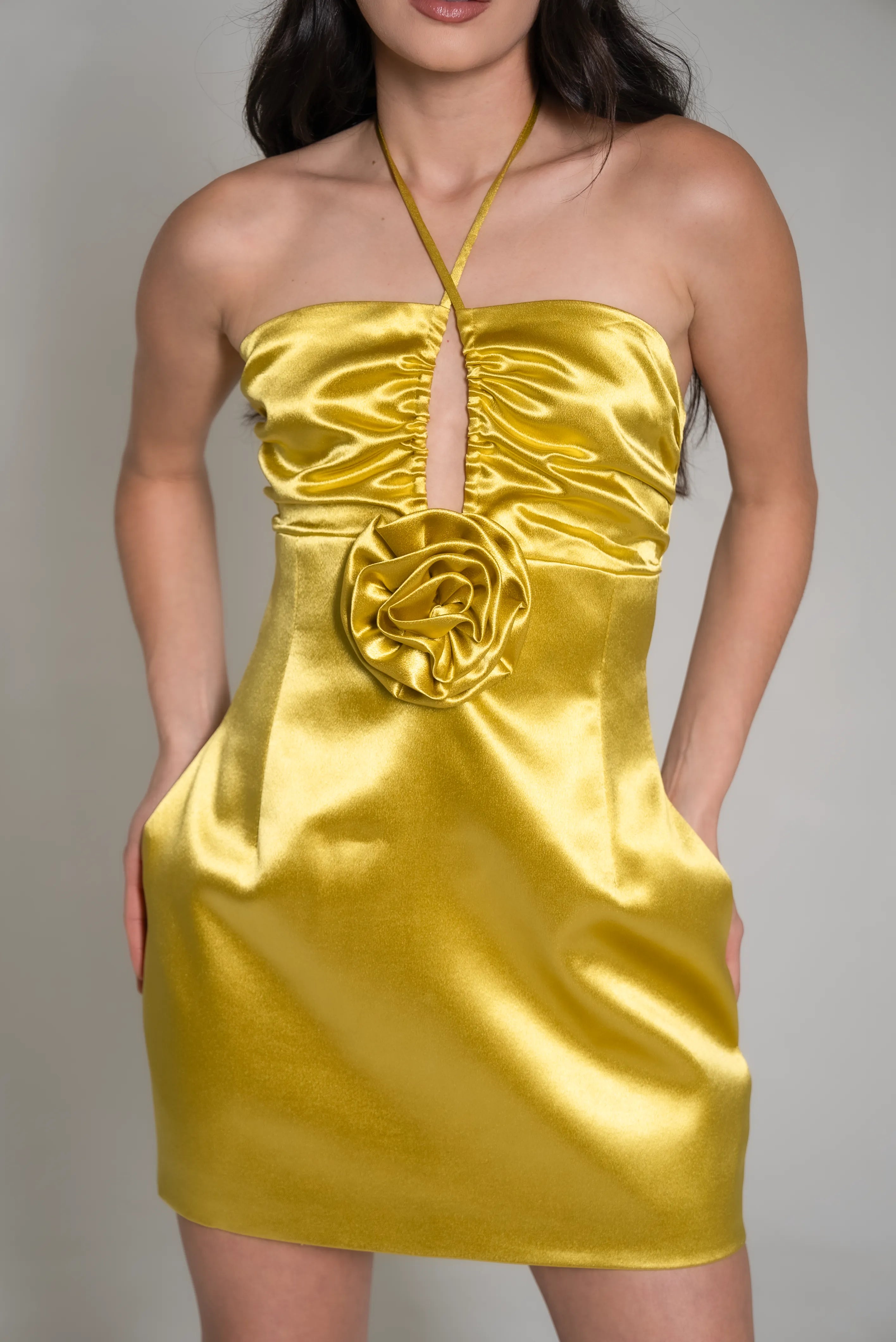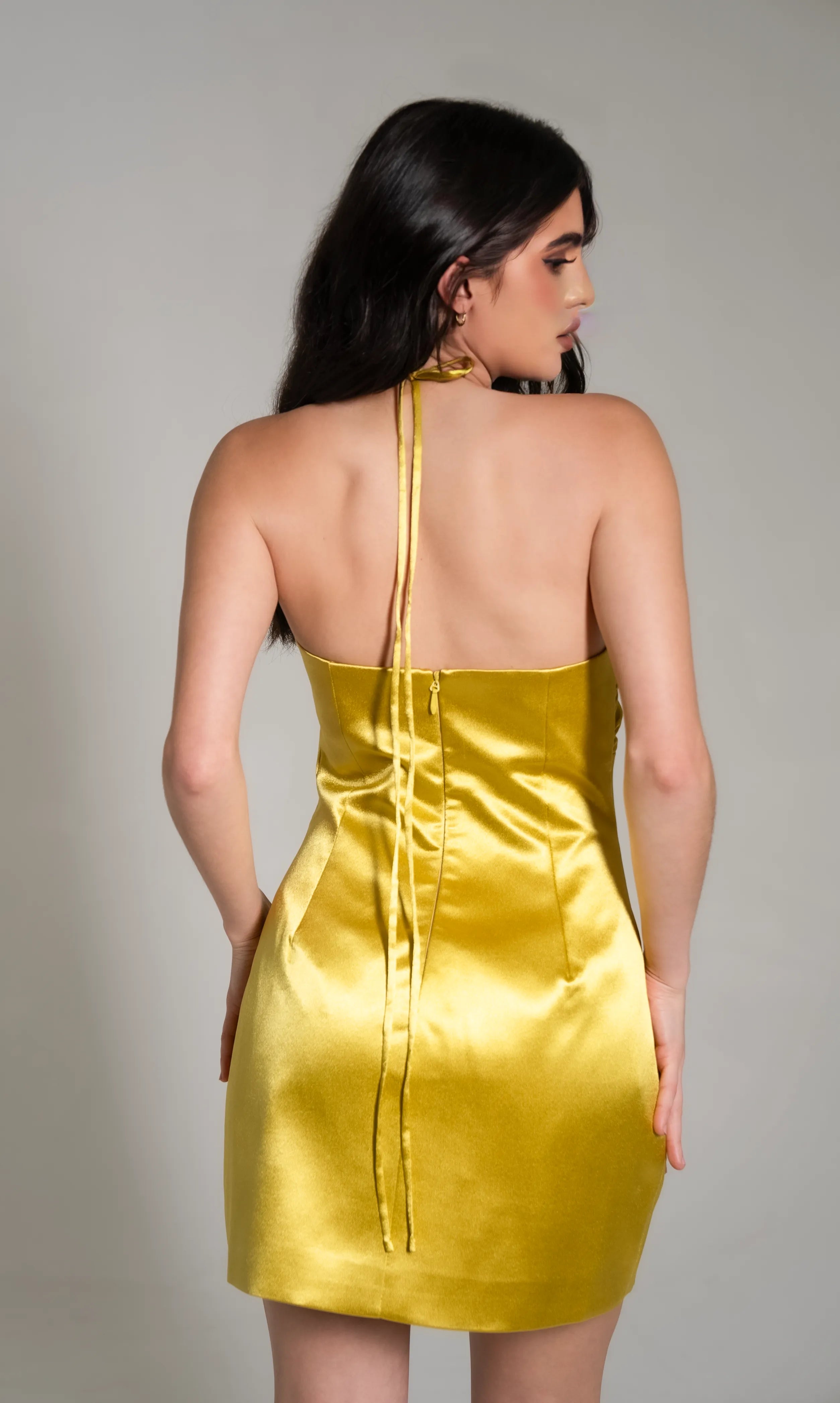 Gold Satin Strappy Halter dress