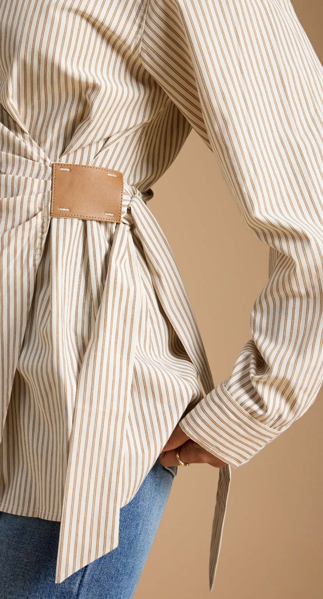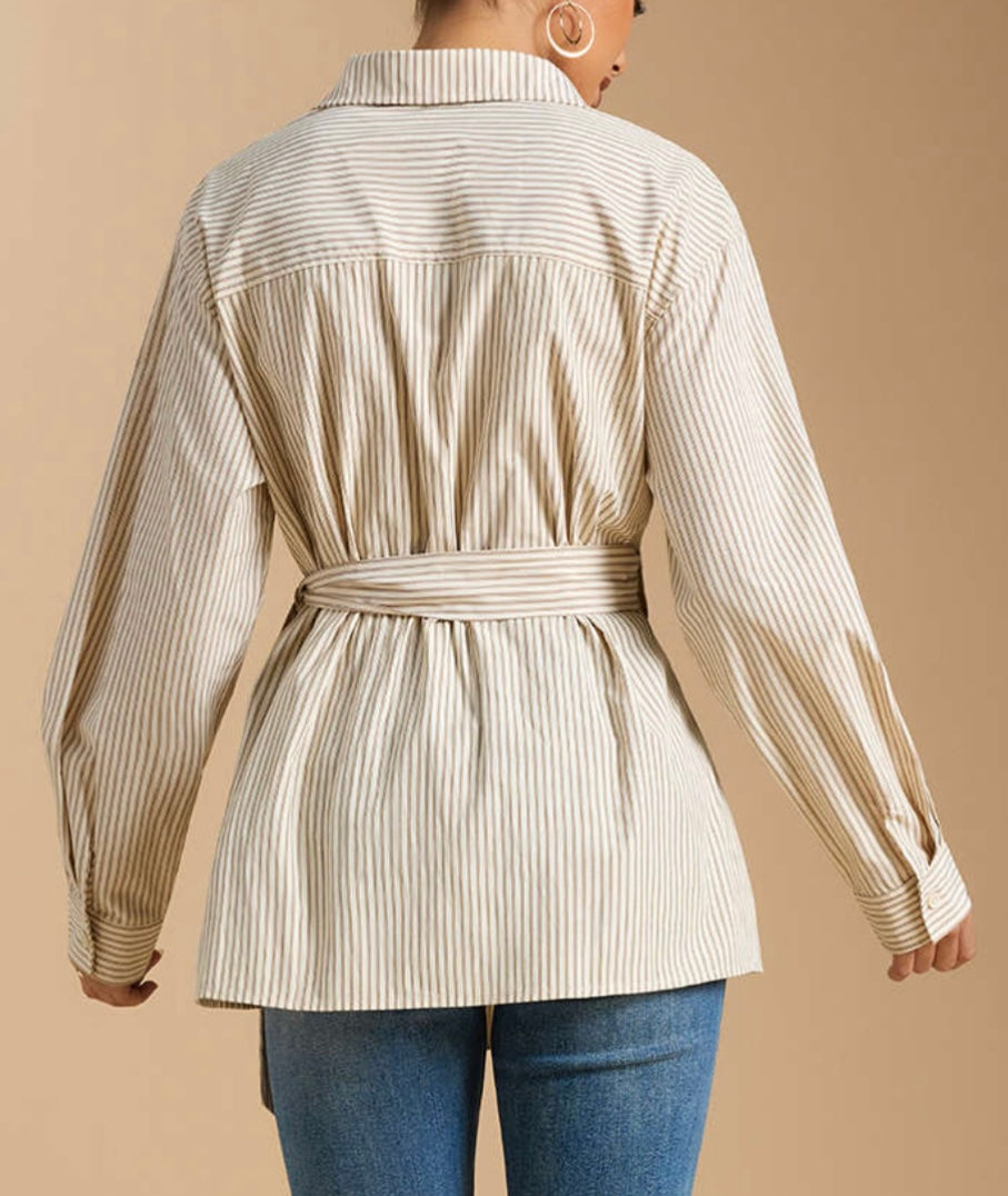 Beige Stripe wrap tie blouse