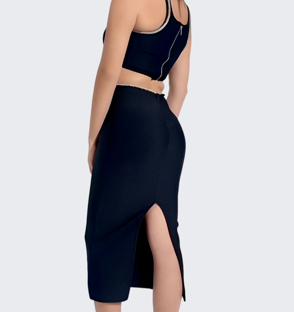 Turn heads in this sleek and sophisticated black bodycon dress, designed with striking silver cord trim. It features a halter neckline, front knot cutout that accentuates the waist, and a fitted silhouette that flatters your curves. A perfect piece for upscale dinners, night outs, or events where you want to make a statement.