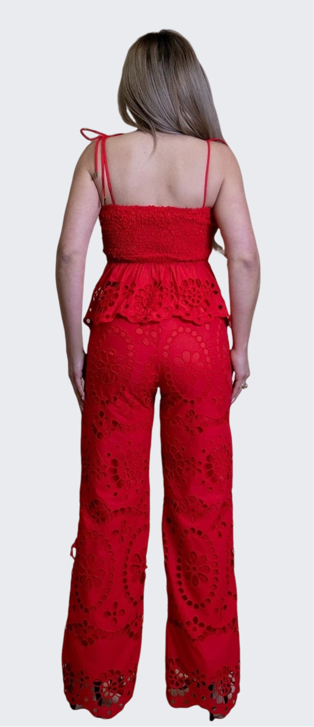 Red Eyelet Pant Set