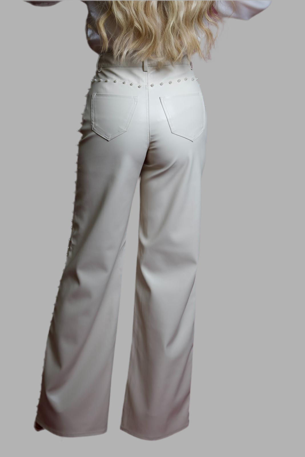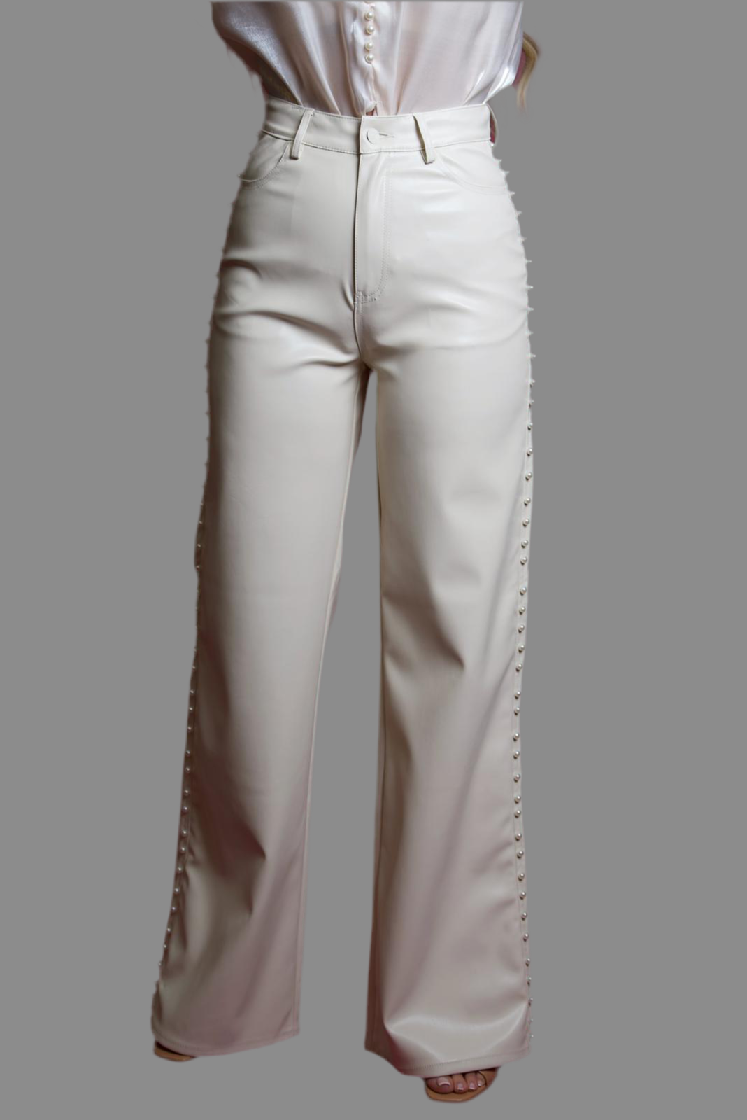 Vegan Leather pants with pearls