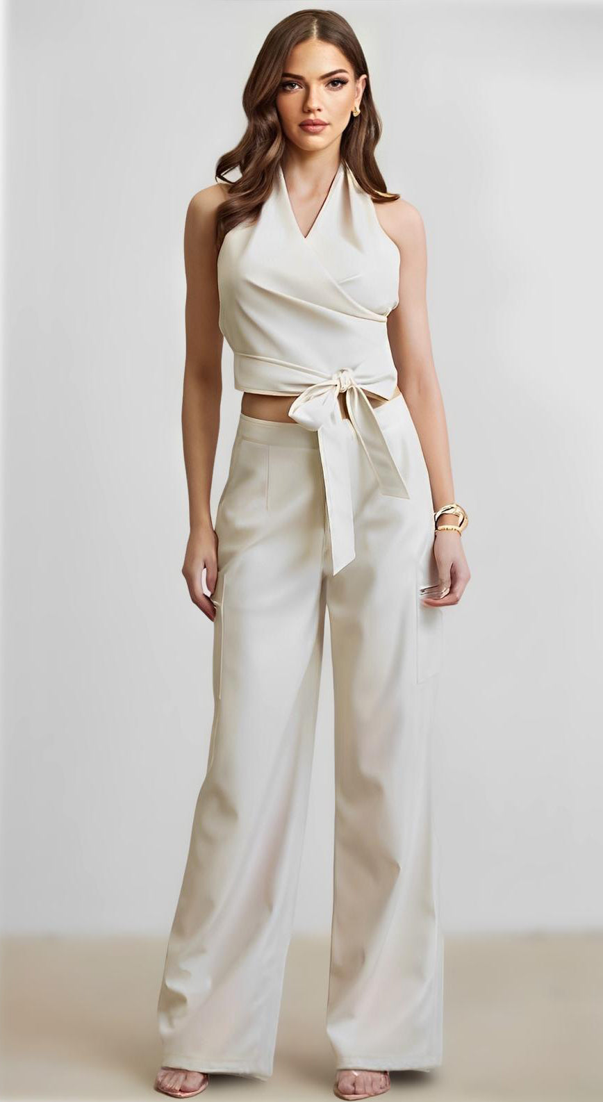 Ecru Vegan Leather Pants set , runs small