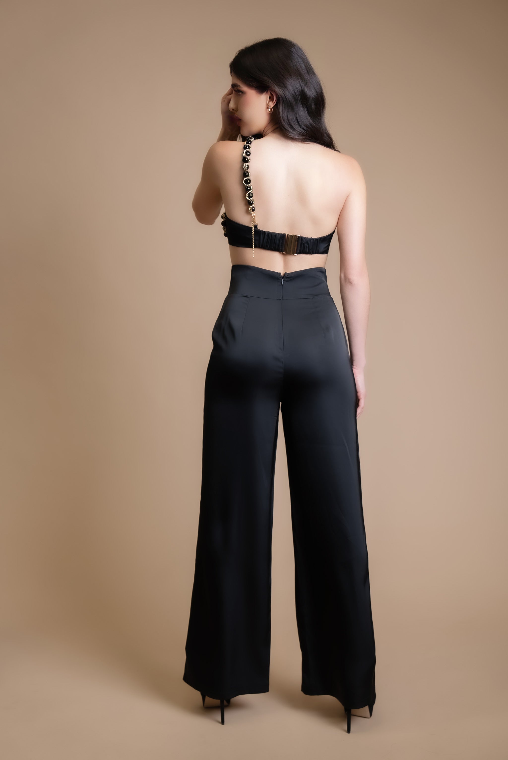 The model is wearing a size S, which fits her measurements: bust 32", waist 24". She is 5'8" tall.