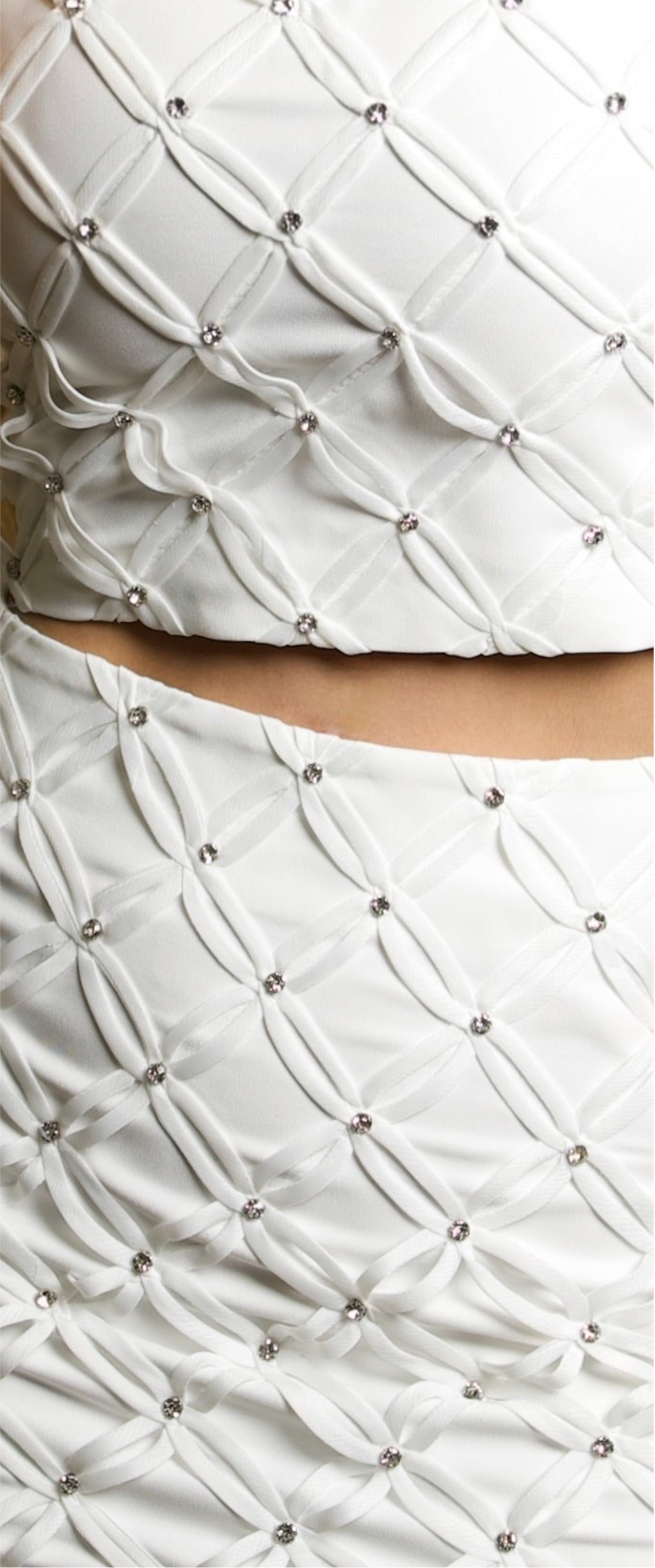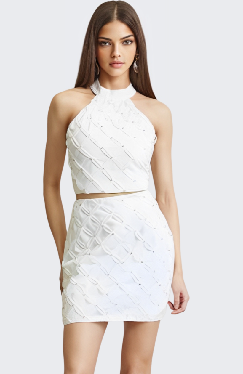 White halter skirt set with rhinestones