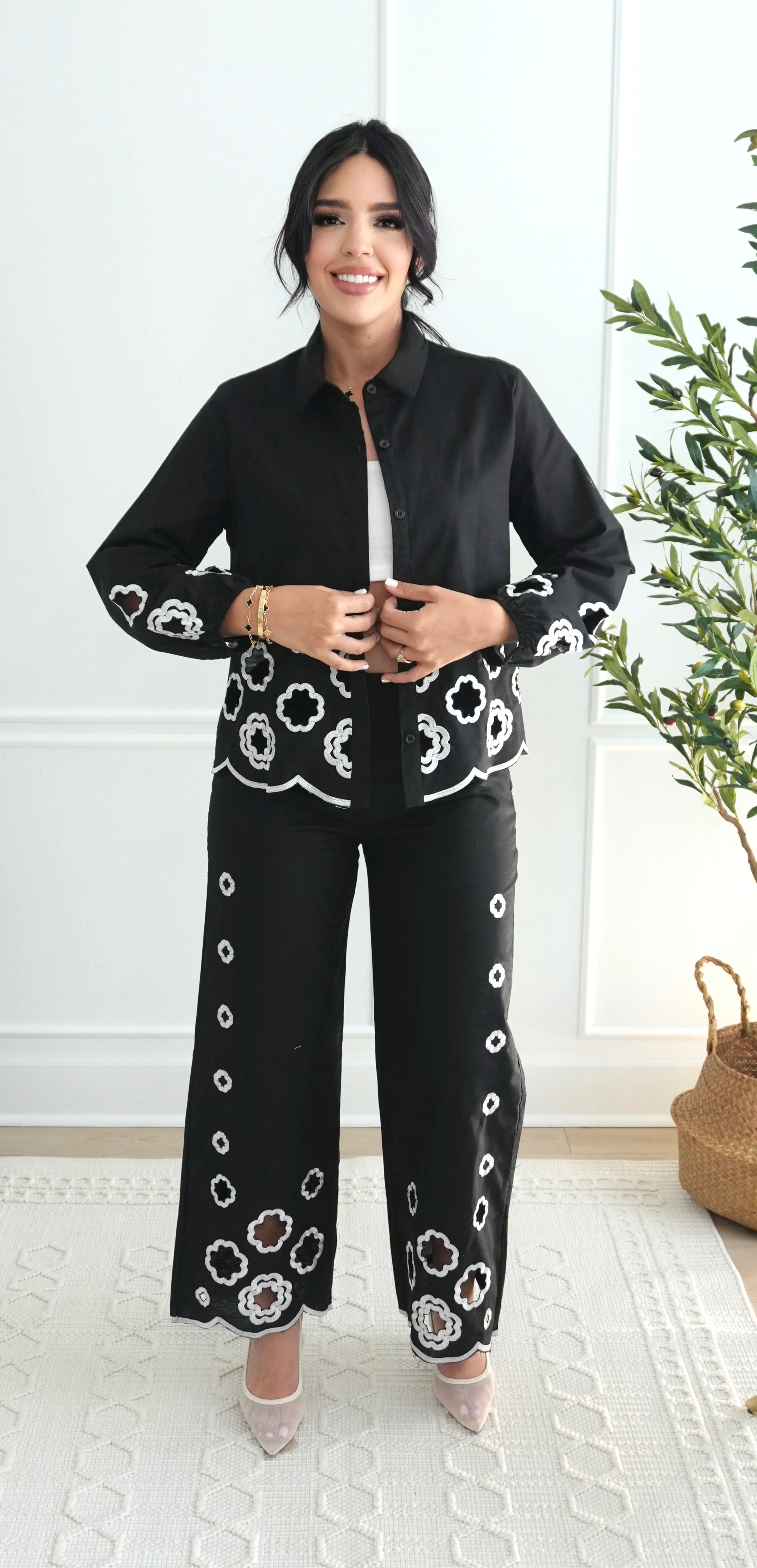 Black set with white embroidery
